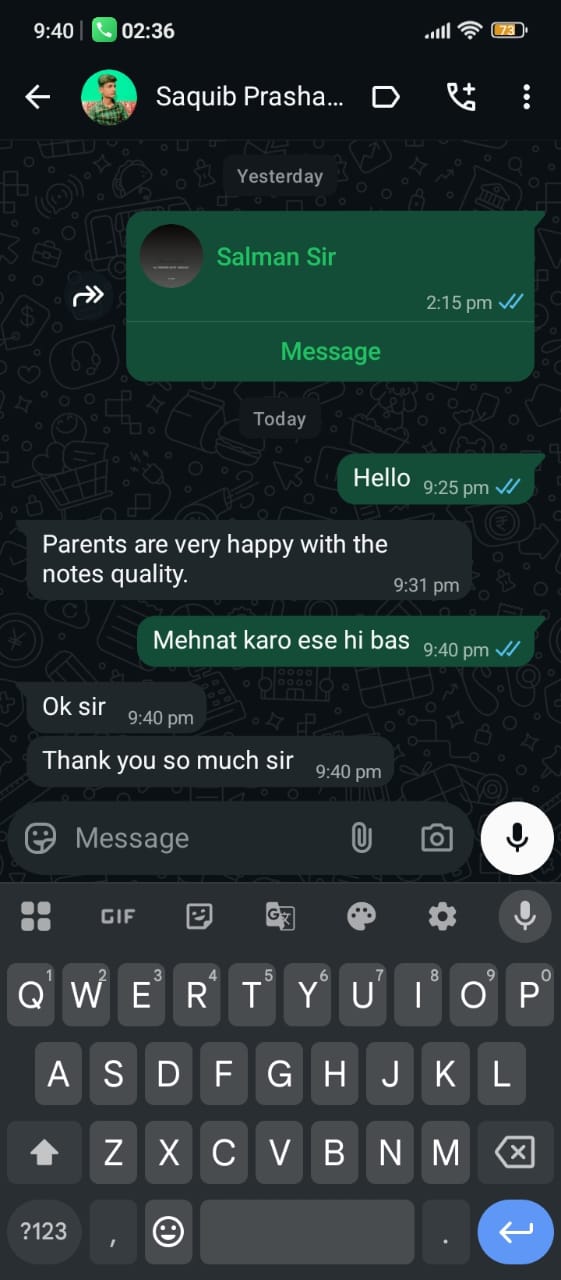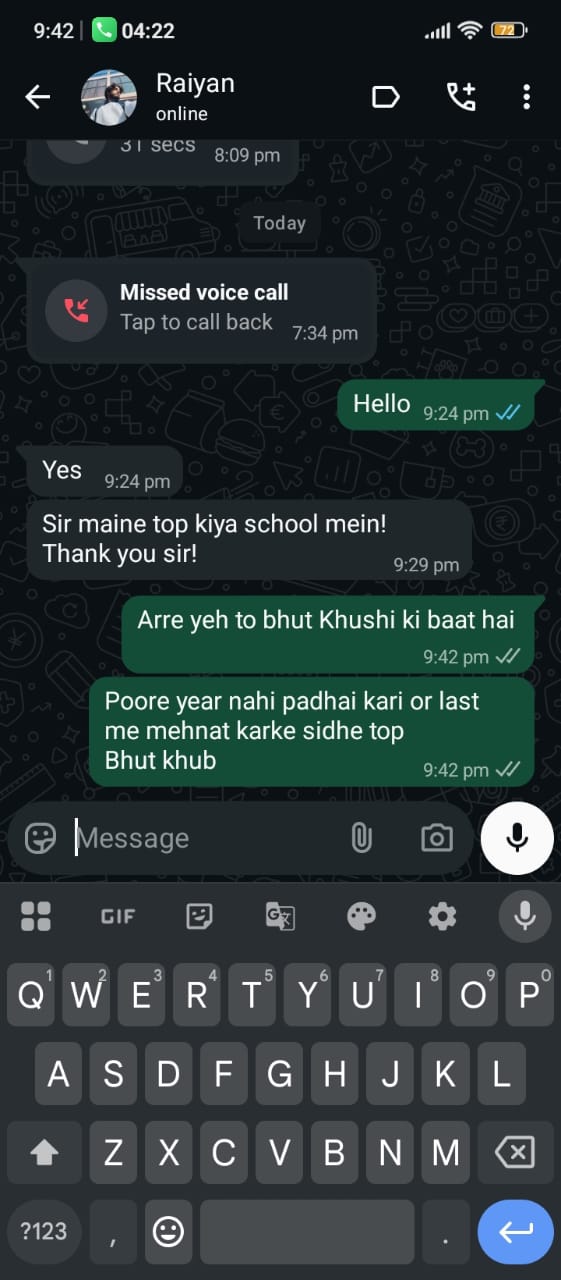 Screenshots from actual student and parent conversations